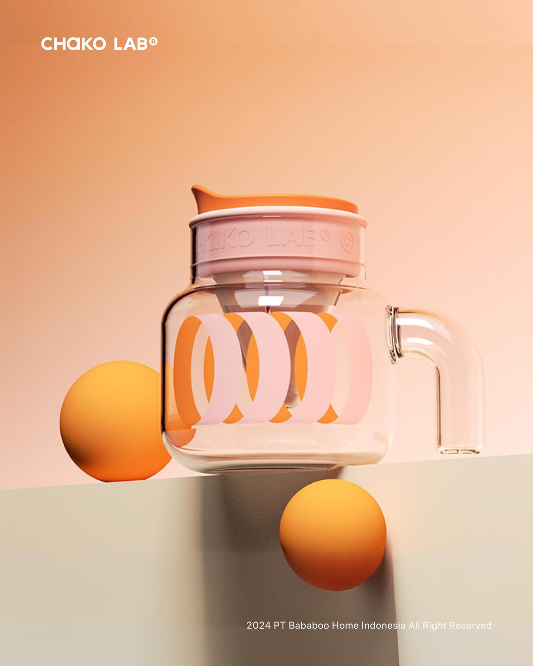 CHAKO LAB Glass Chubby Pot 1100ml - Orange Pink